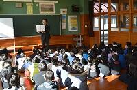 6年生は、県税事務所の方に来て頂き、税についての学習を行いました。「税がもしなかっらたどうなるか」についてのDVDをみたり説明を聞いたりしながら、その大切さを学びました。