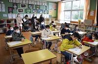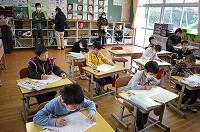 2時間目の1年生の教室では、国語の音読練習をグループで行っていました。みんなで協力して読む練習をしていました。