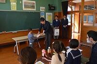 2月4日(月)に入学説明会を行いました。4月に本校に入学予定の14名の新入学児童と保護者が参加しました。説明会の前に、ライオンズクラブからの「ランドセルカバー」と社会福祉協議会からの「赤白帽子」の贈呈式を行いました。その後、1年生の活動の様子を親子で参観しました。説明会では、校長先生のあいさつの後、小学校での生活や保健・給食等についての説明を行いました。説明会の間、4月から最高学年になる5年生が、新入学児童のお世話をしました。4月に入学してくるのが今から楽しみです。