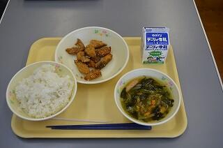「野菜のうま煮」は、児童の食べやすい大きさにカットしてあり、味もよくしみ込んでおいしくいただきました。「たこの酢の物」もごまの風味が食欲をそそり、バランスのよい食感でした。