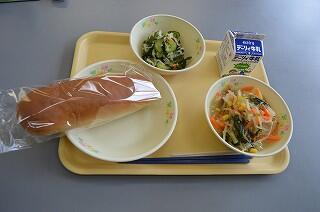 ミルクパンは、ふわっとして柔らかくほんのり甘かったです。スパゲティナポリタンは、ウィンナーにタマネギ、ピーマン、しめじと具もいっしょに美味しく味わえました。子どもたちにも人気でした。アーモンドサラダは、野菜たっぷりでほんのりアーモンド食感でした。