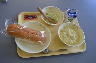 今日の献立は、コッペパン、スパゲティミートソース、チーズサラダ、牛乳です。スパゲティミートソースは、ミートソースがスパゲティに絡んで美味しかったです。チーズサラダは、チーズがアクセントになって野菜もより美味しかったです。コッペパンとスパゲティが相性がよかったです。今日も美味しくいただきました。