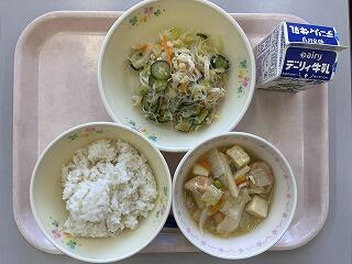 11/17(金)のメニューは『麻婆豆腐』『中華サラダ』『麦ごはん』『牛乳』でした。