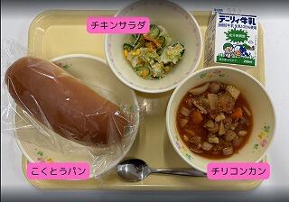 コッペパン、なすのミートスパゲティ、フルーツポンチ