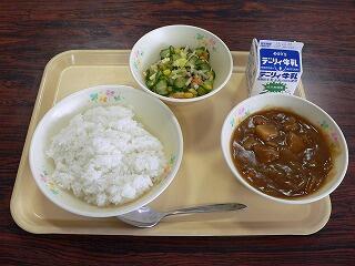 今日の献立は、チキンカレー、ごぼうサラダ、牛乳です。昨日のお雑煮の次は、カレーでした。今日のカレーは、お肉も柔らかくとってもまろやかでした。ごぼうサラダは、ごぼうのシャキシャキ感がサラダの美味しさをひきたてていました。今日も美味しくいただきました。