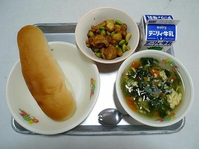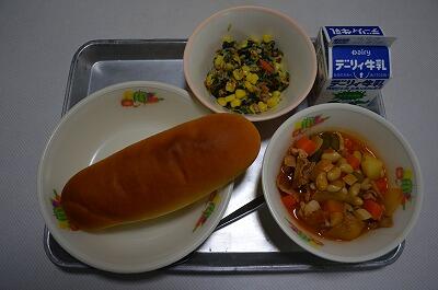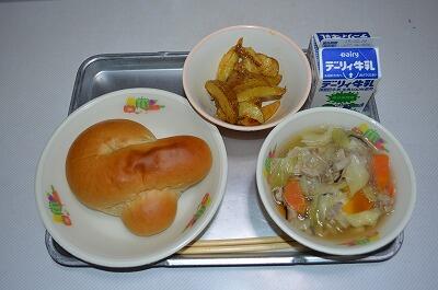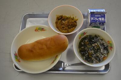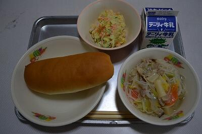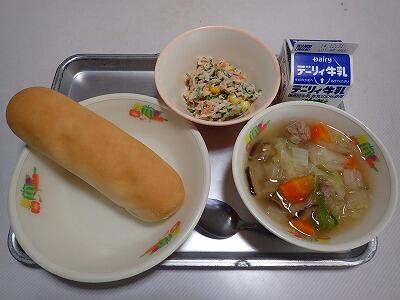 黒糖パン、スープスパゲティ、りっちゃんサラダ