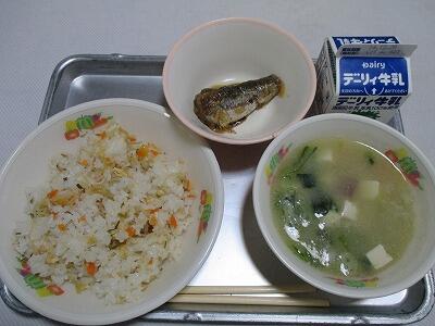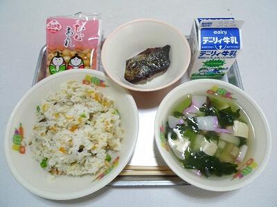むぎごはん、あつあげのちゅうかに、わかめのサラダ