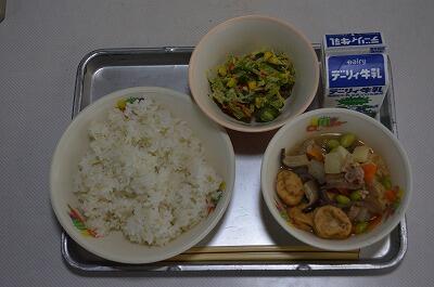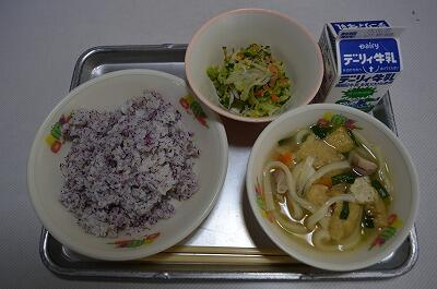 じゅうにこくごはん、いなかうどん、キャベツとちくわのあえもの