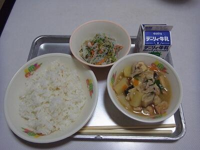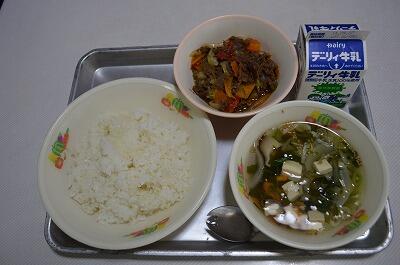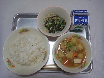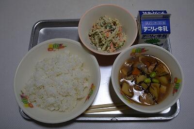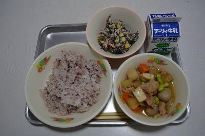 むぎごはん、にくじゃが、ひじきのさっぱりあえ