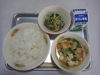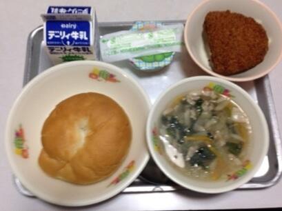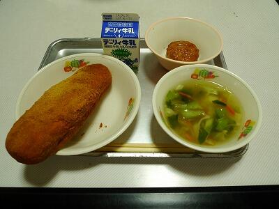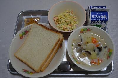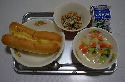 コッペパン、ツナマヨオムレツ、そえやさい、ミルクコーンスープ