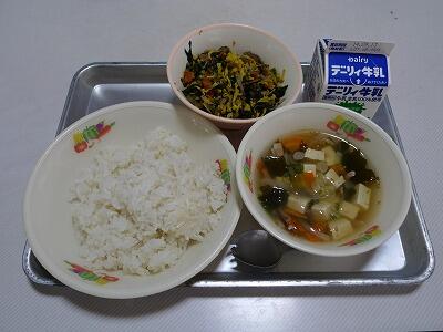 むぎごはん、あつあげのちゅうかに、しらすあえ