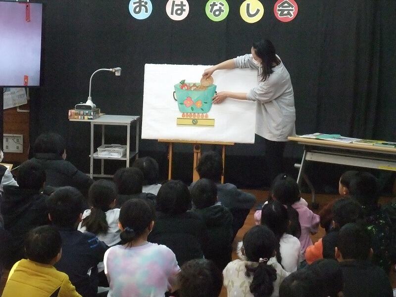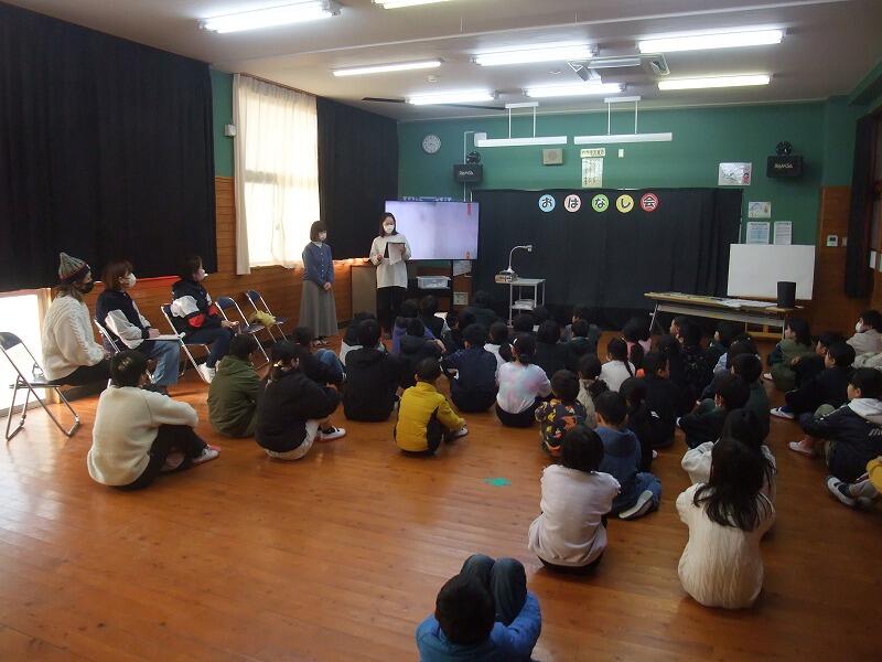 2月17日(月)、この日は読み聞かせボランティアの方々による読み聞かせがありました。いつもは各学級で朝の時間にやっていただいていましたが、この日は全校児童を対象にいつもより時間も内容もたっぷりの拡大版でした。ありがとうございました。