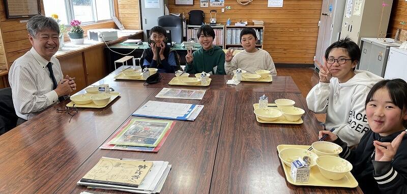 3月10日(月)~12日(水)、6年生が小学校卒業を前に給食の楽しい思い出を作ることを目的に 校長先生と給食を一緒に食べる会(卒業お祝い給食)を行いました。きっと楽しい思い出となったことでしょう。