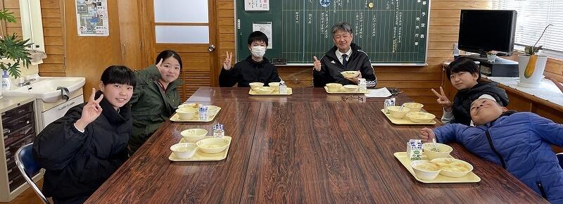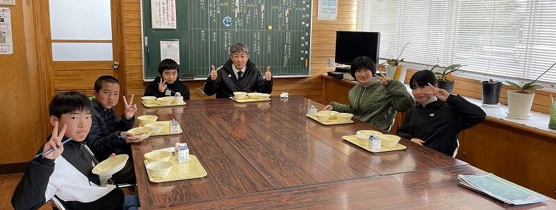 校長先生と給食を一緒に食べる会(卒業お祝い給食)