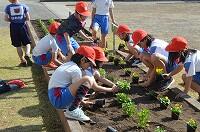 11月6日(火)の業間は栽培活動でした。各学級の花壇に花を植える活動を行いました。植えた花は、ビオラ、ノースポール、キンギョソウです。苗は、用務員の先生が準備してくださいました。担任の先生が植え方の説明を行った後、子どもたちは苗を手にとって一つずつていねいに植えていきました。