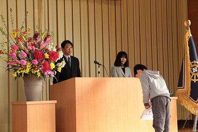 昨日、卒業式が行われましたが、本日は1年間の学業の修了の日でした。1年生から5年生までの、それぞれの代表が校長先生から修了証(あゆみ)をいただきました。その後、1年間のあしあとを振り返る作文発表、校長先生のお話がありました。