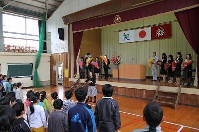 この度の定期異動等で本校を去られる先生方の離任式を行いました。校長先生をはじめ、10名の先生方が31日をもって離任されます。子どもたちも去られる先生方もこれまでの思い出が一度に思い出されたようで、懐かしくもあり、さびしくもありました。お一人ずつお話をしていただいた後、児童を代表して5年生全員でお別れの言葉を発表し、最後に永久津小学校校歌を斉唱しました。いつまでも校歌を思い出していただき、またご活躍を願ってお見送りました。