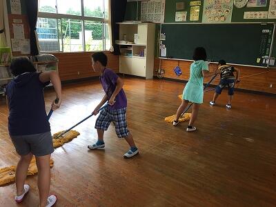 今年度1回目のWAXがけを7月12日に行いました。5・6年生を中心に、自分たちの教室はもちろん特別教室や廊下までWAXをかけ、校舎内がとてもきれいになりました。
