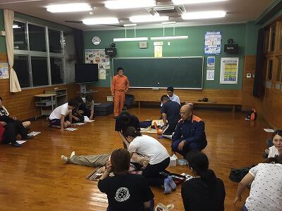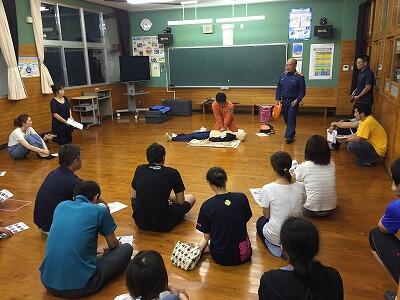 万が一の事故が発生した場合に迅速な対応ができるよう、中央消防署の救急救命士が来られて、救急法講習が行われました。