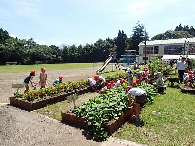 昨日の朝の豪雨がウソのように、本日は青空が広がりました。本日は午前中は太陽の広場、清掃時間は学級園の草抜き、上学年の午後はプール掃除と、あたかも貴重な梅雨の晴れ間に合わせたかのような一日となりました。