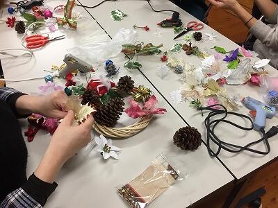 11月24日(木)小中合同の家庭教育学級を行いました。今回はリースづくりを行いました。