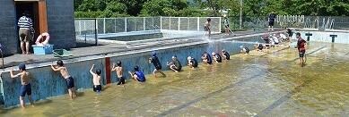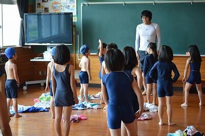 低学年のプール開きを行いました。始めに室内で、プール学習のきまりや約束を確認した後、準備運動を行いました。その後、シャワーを浴びて、プールに入りました。低学年は、小プールを使って水泳の学習を行います。担任の指導の下、とても楽しそうに学習していました。1・2年生にとっては、少し肌寒かったようです。