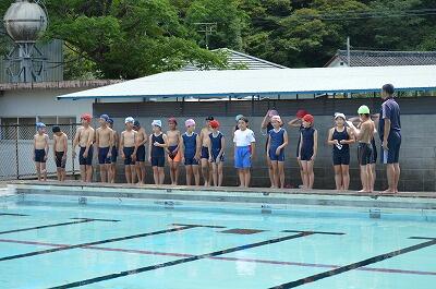 6月5日(月)の6校時に、高学年のプール開きを行いました。校長先生の話の後、代表児童が水泳学習での目標を発表しました。そして、水泳学習中の安全祈願を行い、担任の先生が水泳学習での約束を確認しました。