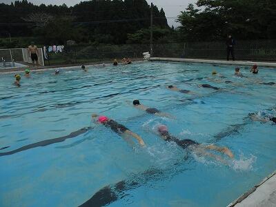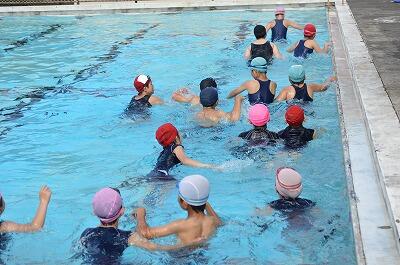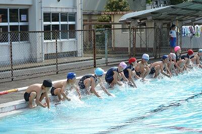 準備運動、シャワーを終え、プールに入りました。始めは、冷たそうにしていた子どもたちでしたが段々と体が水に慣れてきたようでした。前半は、水に慣れる活動を行いました。後半は、泳力調査を行いました。