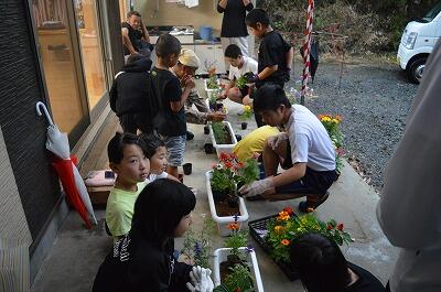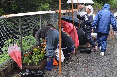 6月25日(日)に「生き生き公民館活動」を実施しました。あいにくの雨天で、予定通り実施した地区と日時を変更して実施した地区がありました。各地区の小学生・中学生と地区の方が一緒に、プランターや花壇に花の苗を植える作業を行いました。