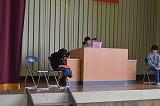 4月19日(木)に「1年生歓迎集会」を行いました。10名の1年生一人一人をインタビュー形式で紹介していきました。1年生は、質問に対してはきはきと答えることができました。紹介の後、歓迎のゲームとして「じゃんけん列車」を行いました。2回とも、1年生がチャンピオンになり大盛り上がりでした。運営委員会の上級生もスムーズに進行することができました。