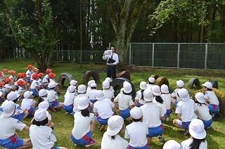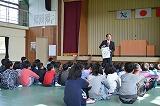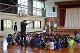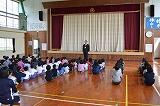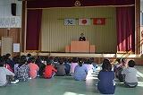 4月26日(木)に全校集会を行いました。運動会練習があるため、運動場の木陰で行いました。校長先生の話、月目標に関する話を行いました。涼しく気持ちよい風が吹く中、子どもたちは真剣に話を聞いていました。