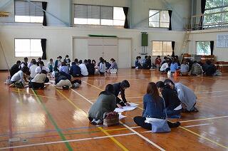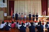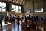 4月20日(金)の業前から1校時の時間に、「運動会の結団式」を行いました。永久津校区は、小学校・中学校の合同で運動会を実施します。大会会長(小学校の校長先生)のあいさつの後、実行委員の紹介、実行委員長のあいさつを行いました。次に、ゲームで団の色を決定し、団旗の授与を行いました。その後、各団に分かれて、団長・リーダーの紹介をして、応援の練習を行い、団員の士気を高めました。