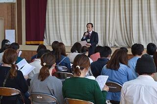 参観・懇談の後、体育館で全校懇談を行いました。職員紹介、校長先生の学校経営ビジョンの説明の後、各担当より本年度の取組の説明やお願いを行いました。全校懇談の後は、地区懇談を行いました。今年は、運動会の競技の出場者についての話合いもしていただきました。
