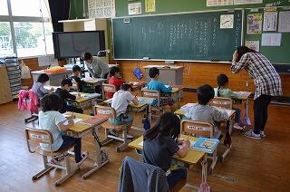 4月22日(日)の参観日に、本年度第1回目のKSSVC(小林スクールサポートボランティアセンター)を活用した取組を行いました。懇談の時間は担任が不在になるため、地区の方に1・2年生の教室に来ていただき学習支援をしていただきました。1年生はひらがなの学習、2年生は時計の学習の支援をしていただきました。支援をしてくださった皆さん、本当にありがとうございます。