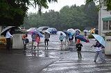 4月24日(火)~27日(金)の4日間、家庭訪問を実施します。子どもたちは、4時間授業で、給食後下校します。初日の今日は、時折強い雨が降る中でしたが、集団下校で班長を中心に安全に気を付けながら下校していました。