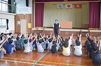4日間の秋休みが終わり、本日(10月10日)から第2学期がスタートしました。全校児童71名が元気に登校し、1校時に第2学期始業式を行いました。始めに3名の代表児童が作文発表をしました。1学期の反省をもとに2学期の目標や頑張りたいことを発表しました。次に、校長先生が、作文発表の感想や2学期の取組についての話をされました。始業式の後に、あいさつ標語の表彰や生活指導等を行いました。