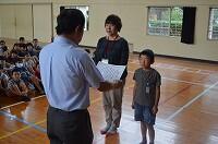 本日(10月5日)は、『第1学期終業の日』でした。3校時に、体育館で終業式を行いました。始めに、代表児童3名が作文を発表しました。1学期を振り返って頑張ったことやもう少しだったこと、2学期に頑張りたいことなどを発表しました。次に、校長先生より、作文発表の感想や、子どもたちの1学期の頑張りについての話がありました。終業式後、担当職員が秋休みの生活についての指導を行って終わりました。秋休みは、わずか4日間と短いですが、子供たちには、健康や安全に気を付けて過ごしてほしいです。そして、元気に2学期を迎えてほしいです。