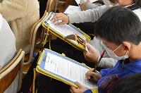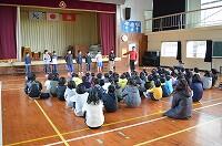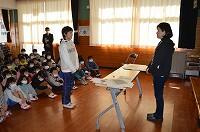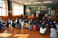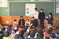 1月22日(火)の業間の時間に『給食感謝集会』を行いました。給食センターから栄養士の先生も来てくださいました。始めに保健給食委員会児童が発表を行いました。全校児童へのアンケートをもとに“好きな給食の献立”をクイズ形式で発表しました。次に、栄養士の先生が給食や食べることについての話をしてくださいました。特に『かむことの大切さ』を教えてくださいました。代表の6年生がお礼の言葉を言った後、全校児童からの感謝の手紙を渡しました。