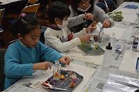 1月23日(木)に第7回家庭教育学級を行いました。今回は、講師の先生に来ていただいて『ハーバリウム製作』を行いました。小中学生や保護者が約30名参加しました。説明を聞いた後、色とりどりのドライフラワーや飾り、いろいろな形のびんの中から、思い思いの材料を選んで製作に取りかかりました。びんに色の付いた砂を入れて、選んだ材料をピンセットで慎重に入れていきました。そして、オイルを入れて完成です。子どもたちも器用に作り、とても素晴らしい作品が出来上がりました。最後に集合写真を撮って終わりました。講師の先生、そして参加された皆さん御苦労様でした。