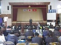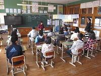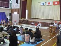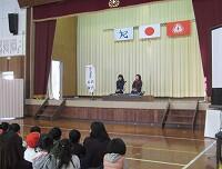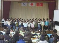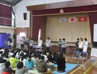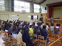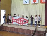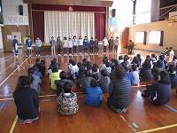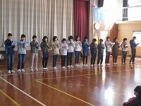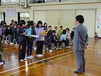 2月28日(木)の卒業式練習の後に、2月末で学校を離任することになった先生とのお別れの式を行いました。初めに校長先生が話をされ、次に離任される先生があいさつをしました。そして、代表児童3名がお礼の言葉を述べました。そして花束を贈呈しました。最後に、全校で歌のプレゼントをしました。