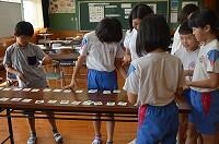 3・4年生は、主食、主菜、副菜について学習し、1食分の献立を自分で考えるという内容でした。子どもたちは、献立を考える際に、主食、主菜、副菜を意識し、用意されたカードから自分たちで献立を考えました。そして、選んだ理由もしっかりワークシートにまとめることができました。