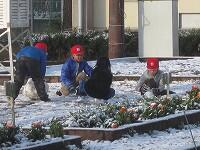 2月18日、今年初の雪が運動場に積もっていました。朝から子どもたちは、一面の雪に大はしゃぎ。雪合戦をする子ども、雪だるまづくりをする子ども。それぞれが思い思いに雪遊びを楽しみました。