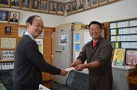 2月27日、平成4年に本校を卒業され、厄年を迎えられた方々を代表して、假屋隆司さんが子どもたちのために寄付をもってこられました。学校では、子どもたちの学力向上、豊かな心の醸成のために本を購入をさせていただきます。地域の方、学校を応援してくださる方々の御厚意に感謝いたします。購入させていただきました本は、図書室にコーナーを設けておりますので、学校にお越しの際には是非、お立ち寄りください。