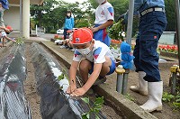 今年も1・2年生の生活科の学習の一環で、サツマイモの苗植えを行いました。花壇にマルチをはり、サツマイモの苗を植える準備を地域ボランティアの2名の方に手伝っていただきました。当日も講師としてお招きし、児童と一緒に苗を植える体験学習をしました。茎が丈夫な立派な苗が植えられると子どもたちも満足そうでした。秋の収穫までしっかり育てていきましょう!