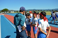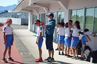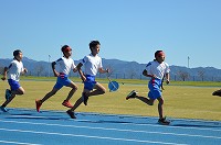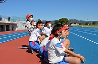 この大会に向けて練習してきた成果が発揮される日でした。今年は分散しての3校合同の大会となりました。小規模校の3校でしたが、市の陸上競技場をお借りしての記録会は、快晴の中、行われました。