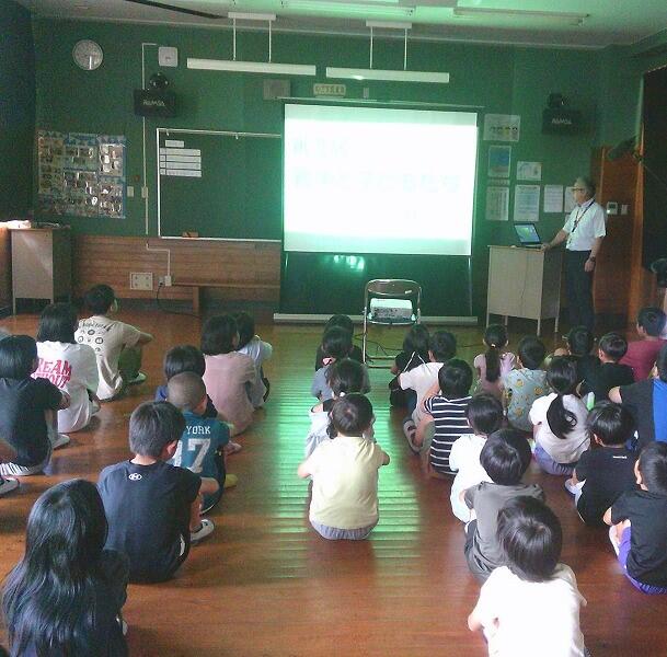 集会では、戦時中、宮古島から小林市に疎開してきた方々を題材にした紙芝居をもとに平和について学習しました。NHKでもこの様子が紹介されました。