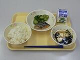 麦ご飯、サワラの西京焼き、かっぱ漬け、若竹汁