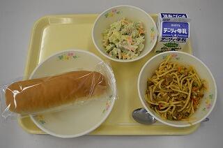 スパゲティは、味もよく、子どもたちが喜んで食べそうです。サラダは、アスパラがたくさん入っていて、歯ごたえもよく味も抜群です。