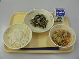 麦ご飯、カレー風味肉じゃが、ひじきのさっぱり和え