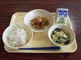 今日の献立は、麦ご飯、鶏肉と野菜のくず煮、ほうれん草のしらす和え、青梅ゼリーでした。くず煮は、鶏肉が柔らかく、とろみがあって食べやすく、とても美味しいです。和え物は、ほうれん草としらすやごまの風味がマッチして、とても美味しいです。デザートも付いて、子どもたちも喜ぶことでしょう。